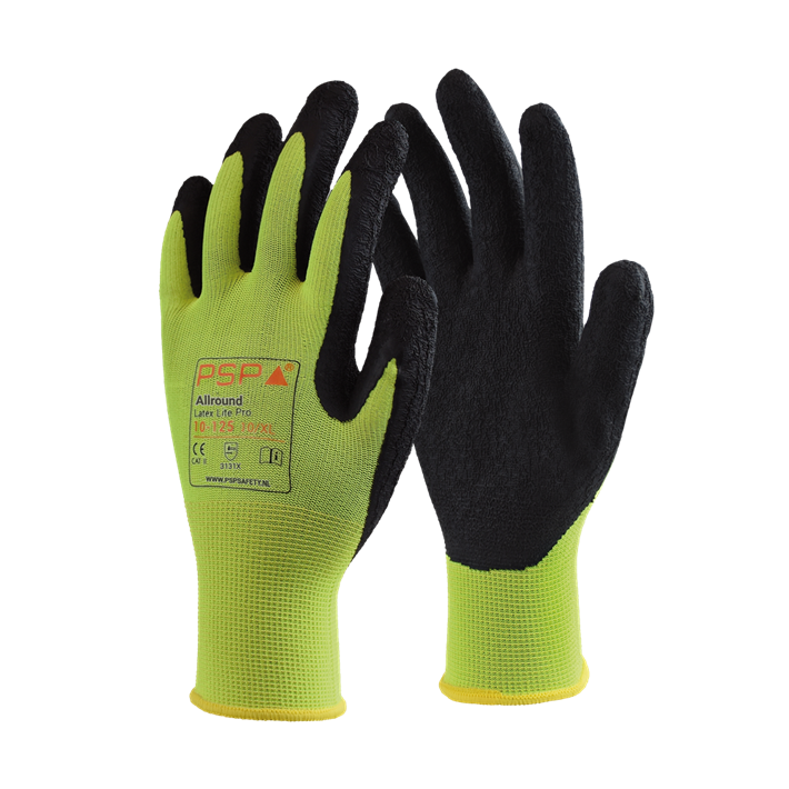 Le PSP Allround Latex Lite Pro 10-125 est un gant doté d'une doublure en nylon Hi-Vis jaune 13G tricotée en rond et recouverte d'un revêtement en latex. Le dos et les doigts du gant sont ajourés, ce qui assure une bonne ventilation et donc un excellent confort. Le revêtement en latex offre une