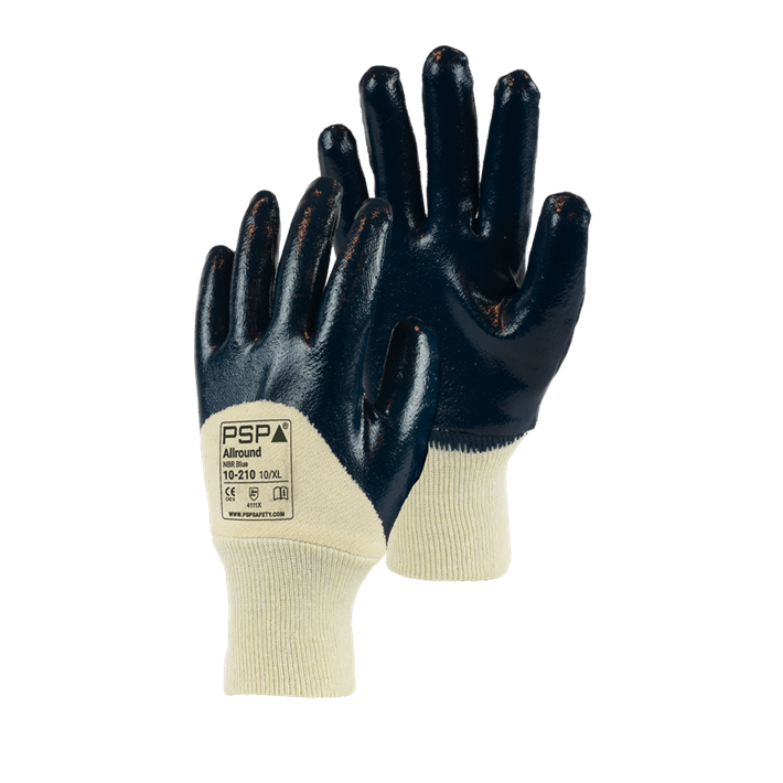 Le modèle Allround NBR Blue 10-210 est un gant avec une doublure en jersey de coton et un revêtement en nitrile. Le revêtement est durable et antidérapant pour une bonne prise en main des matériaux. L'article PSP 10-210 a été testé et certifié conforme au règlement européen (UE) 2016/425 et aux normes EN EN420 / EN388:2016.