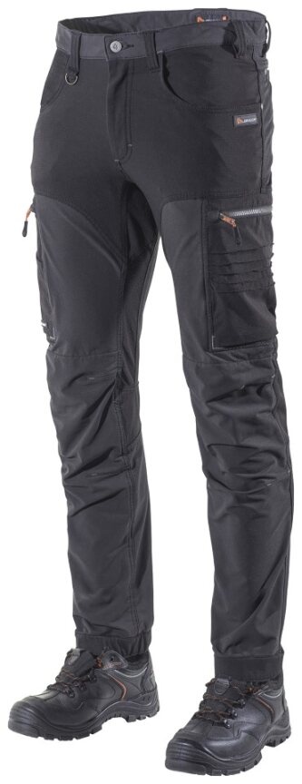 Pantalon de service/extérieur léger et flexible en tissu extensible. Empiècements en Cordura extensible sur l'assise, le devant, l'entrejambe, les poches, l'arrière du genou et les bas de jambe pour une durabilité accrue. Un pantalon au style moderne et à la coupe ajustée, conçu pour offrir un confort optimal tout au long de la journée de travail.