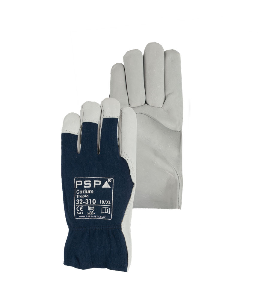 Le PSP Corium Tropic 32-310 est un gant de travail fabriqué en cuir de chèvre souple de première qualité de 0,8 mm d'épaisseur, avec un dos en interlock bleu et un pouce luxueux standard. Le cuir est exempt de chrome VI.