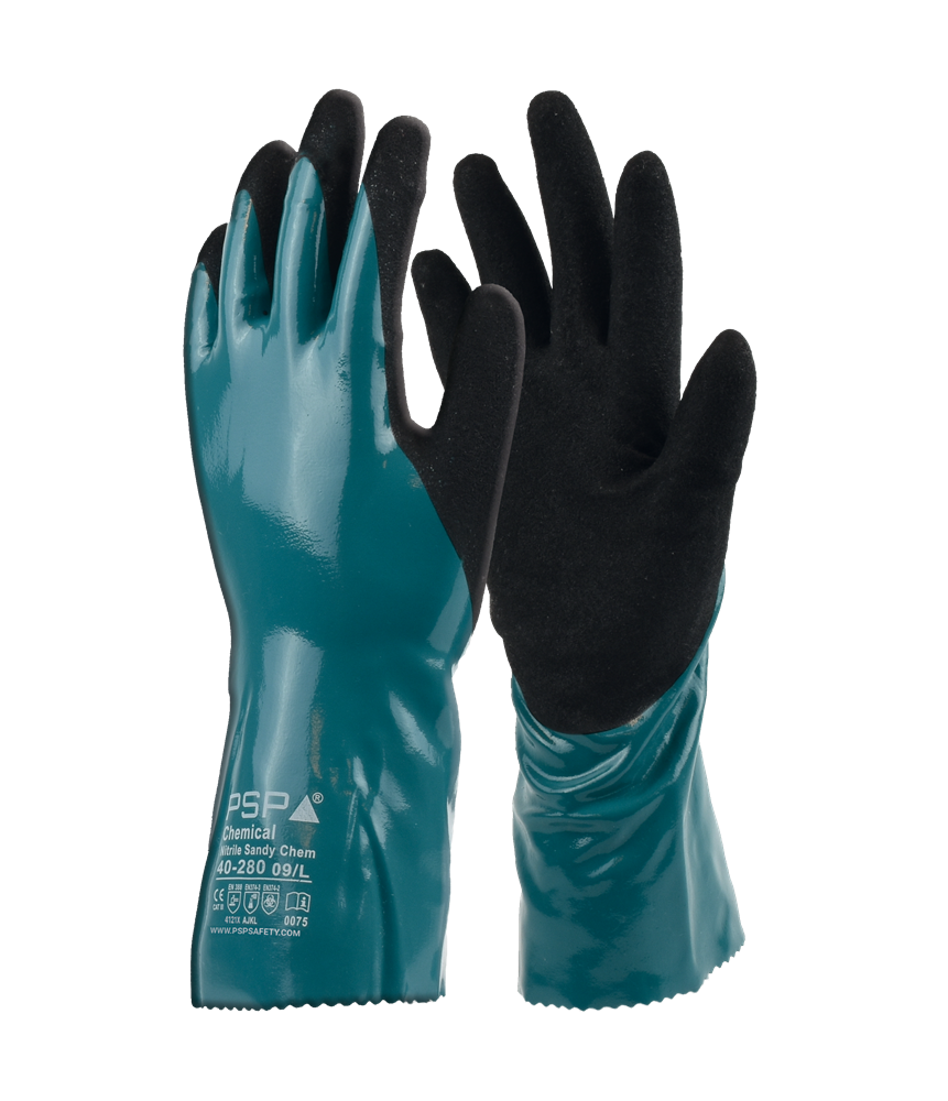 Le PSP 40-280 Chemical Nitrile Sandy Chem est un gant résistant aux produits chimiques avec un revêtement en nitrile et un revêtement supplémentaire en nitrile rugueux dans la paume pour une adhérence optimale. L'ensemble constitue un gant résistant aux produits chimiques très confortable et très souple, notamment grâce à sa doublure 18G. Le revêtement en nitrile offre une excellente adhérence dans les environnements huileux et humides. La longueur est de 30 cm.