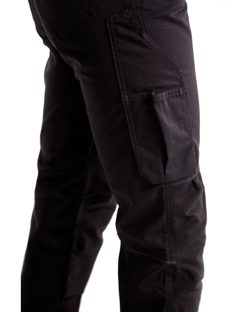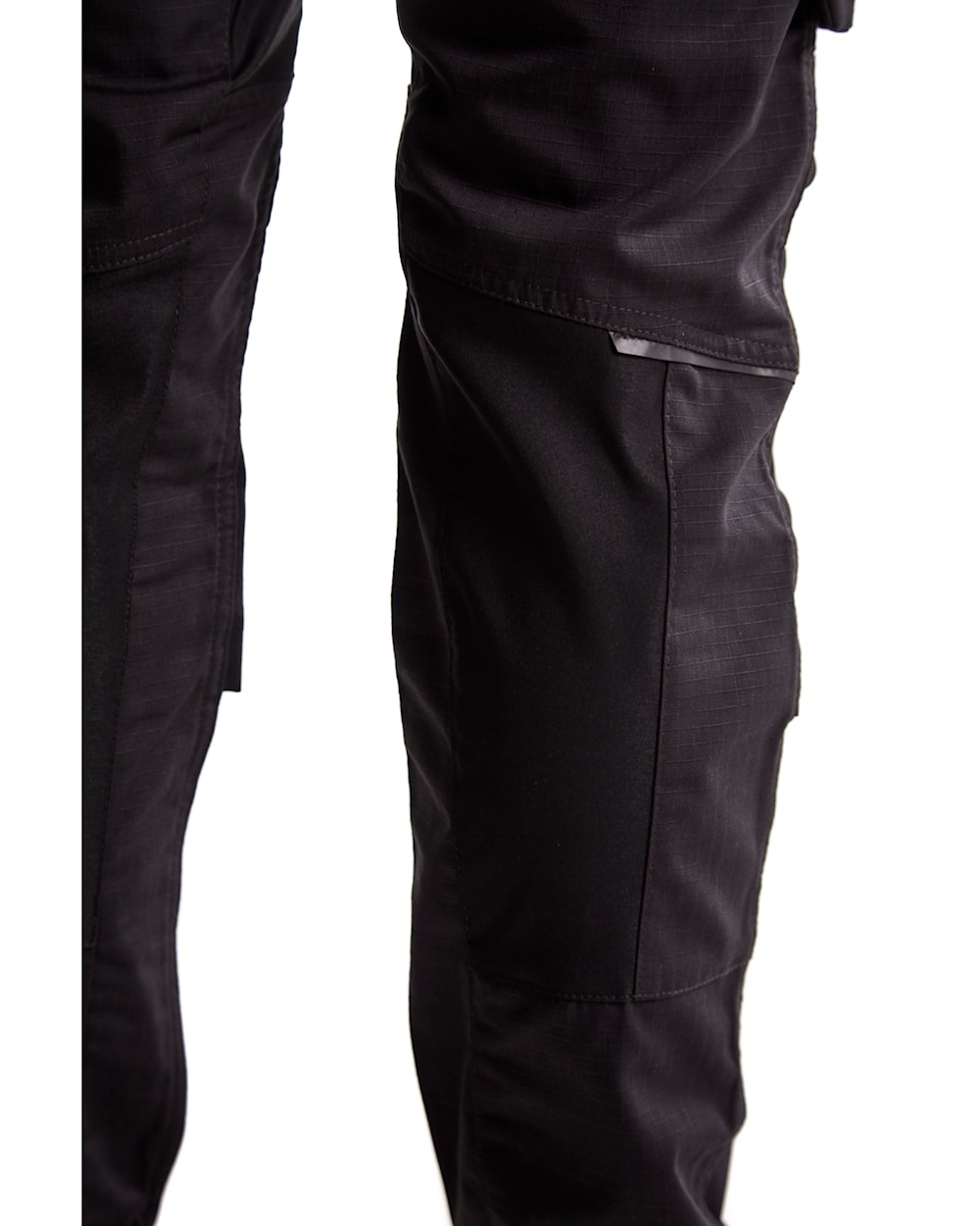 - matériau extensible et résistant aux rayures au niveau de l'entrejambe, des mollets et des poches genouillères