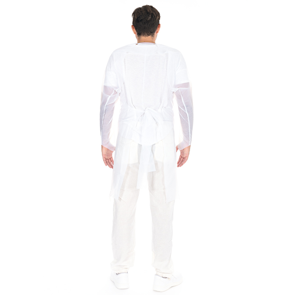 Ces blouses sont fabriquées dans un matériau CPE léger. L'abréviation CPE signifie « Cast Polyethylene » (polyéthylène moulé). Ce matériau rend les blouses imperméables à l'eau et aux autres liquides. Les blouses sont donc idéales comme blouses d'examen pour le personnel des hôpitaux, des maisons de retraite et des maisons de soins. Un autre avantage est que le matériau a été testé pour sa résistance aux virus selon la norme EN 14126 et empêche la contamination en protégeant contre les corps étrangers. De plus, les blouses d'examen sont dotées d'un trou pour le pouce au niveau des poignets. Cela permet de fixer facilement les manches et les empêche de glisser.