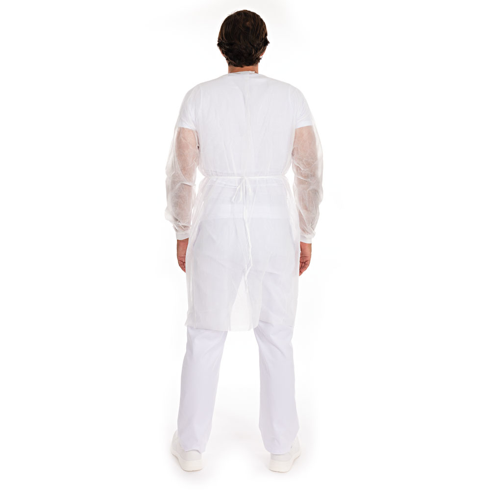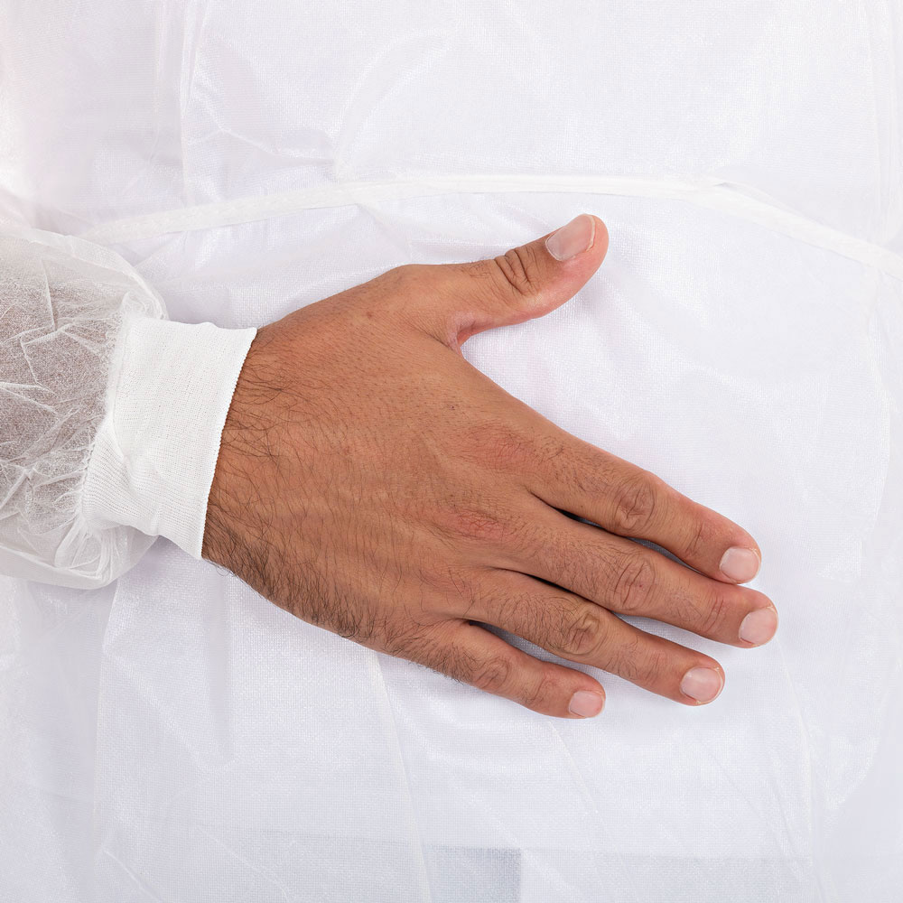 Ces blouses de haute qualité de Hygostar sont fabriquées en PP pur et disposent d'un revêtement PE supplémentaire sur le devant. Le matériau PE a été testé pour sa résistance aux virus selon la norme EN 14126. Il empêche la contamination dans les zones sensibles sur le plan hygiénique. Les blouses sont donc particulièrement adaptées comme protection externe dans le secteur des soins de santé. Elles conviennent également parfaitement aux maisons de retraite et aux hôpitaux. Le matériau de support est un non-tissé PP de haute qualité et résistant. Il est respirant et confortable, même en cas d'utilisation prolongée. Le revêtement en PE recouvre toute la partie avant et les manches. Les blouses se ferment facilement au niveau du cou à l'aide d'une bande Velcro et à la taille à l'aide d'une ceinture.