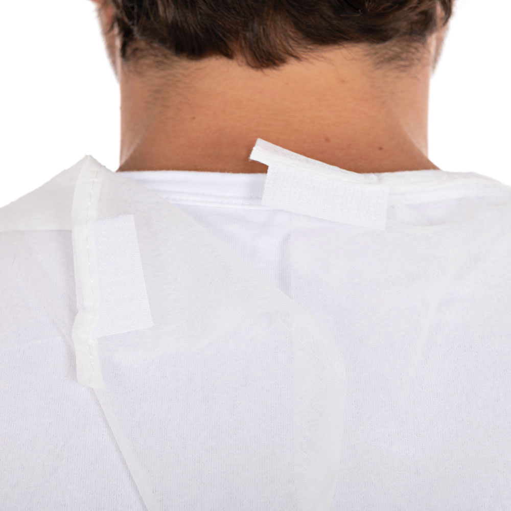 Blouse d'hôpital avec fermeture velcro, PP/revêtement PE, blanche