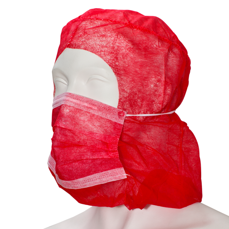 Cagoule PP astro PREMIUM avec masque buccal rouge de Care & Serve