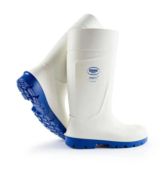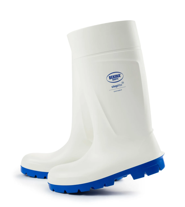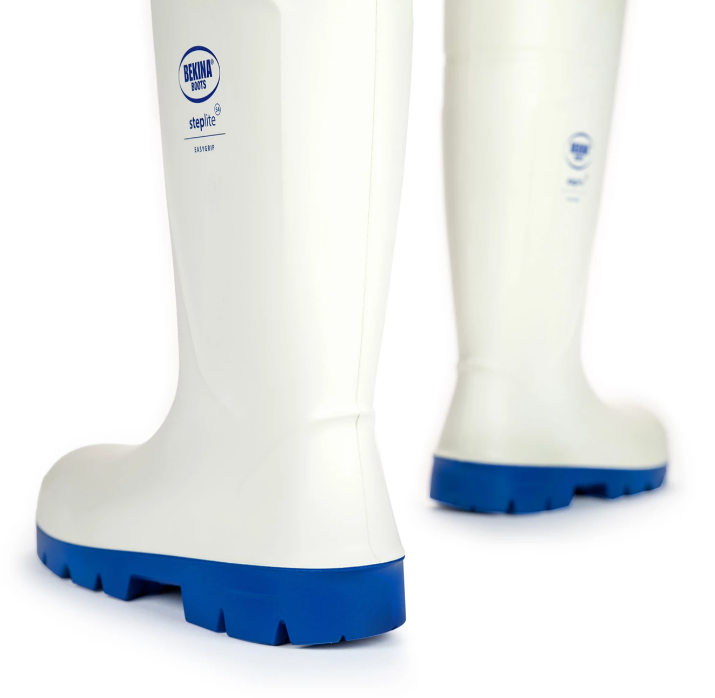 Bottes BEKINA PU STEPLITE Food BLANC semelle bleue S4