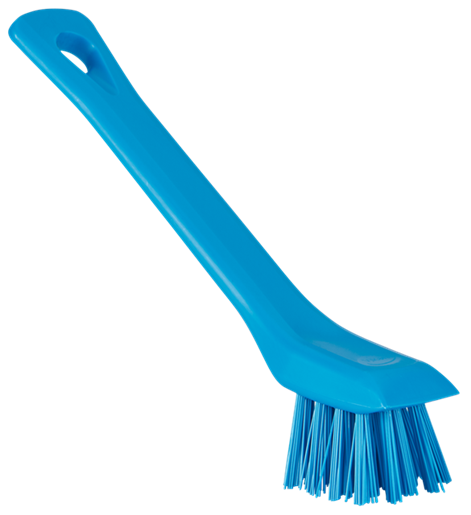 Une brosse de détail très efficace. Le bord raclant robuste permet d'éliminer les salissures très tenaces des surfaces. La poignée plate offre un bon soutien et un bon contrôle dans la main pour diverses tâches de nettoyage. Vous pouvez exercer une force supplémentaire pendant le récurage en appuyant votre index sur la tête de la brosse pendant le nettoyage.