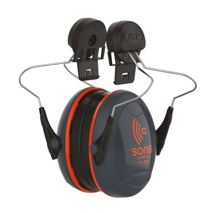 Les casques antibruit Sonis® Compact montés sur casque offrent une atténuation moyenne. Ce casque antibruit a un SNR de 31 dB. Ce modèle Sonis®Compact est uniquement destiné à être utilisé avec le casque de sécurité EVO®6100 à bord complet.