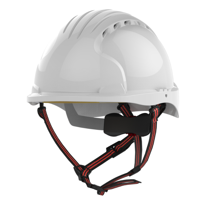 EVO® 5 DualSwitch™ est entièrement certifié selon les normes EN 397 et EN 12492, avec la possibilité de passer d'une norme à l'autre d'une simple pression sur un bouton. JSP a fourni un casque innovant qui peut être utilisé aussi bien au sol (EN 397) qu'en hauteur (EN 12492).