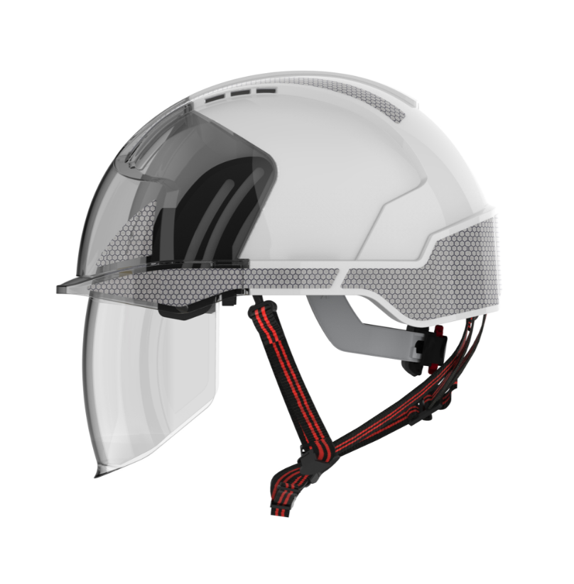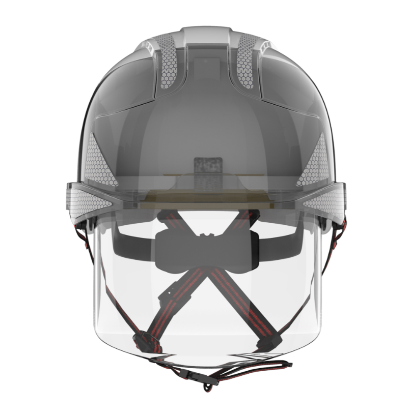 Ce casque de sécurité combine la nouvelle technologie de lunettes rétractables EVO® VISTA® avec le système innovant de harnais mentonnière DUALSWICTH, qui permet de passer facilement du travail au sol au travail en hauteur. L'écran facial offre une protection contre les chocs de classe A - testée avec des roulements à billes en acier de 6 mm à des vitesses allant jusqu'à 425 mph.