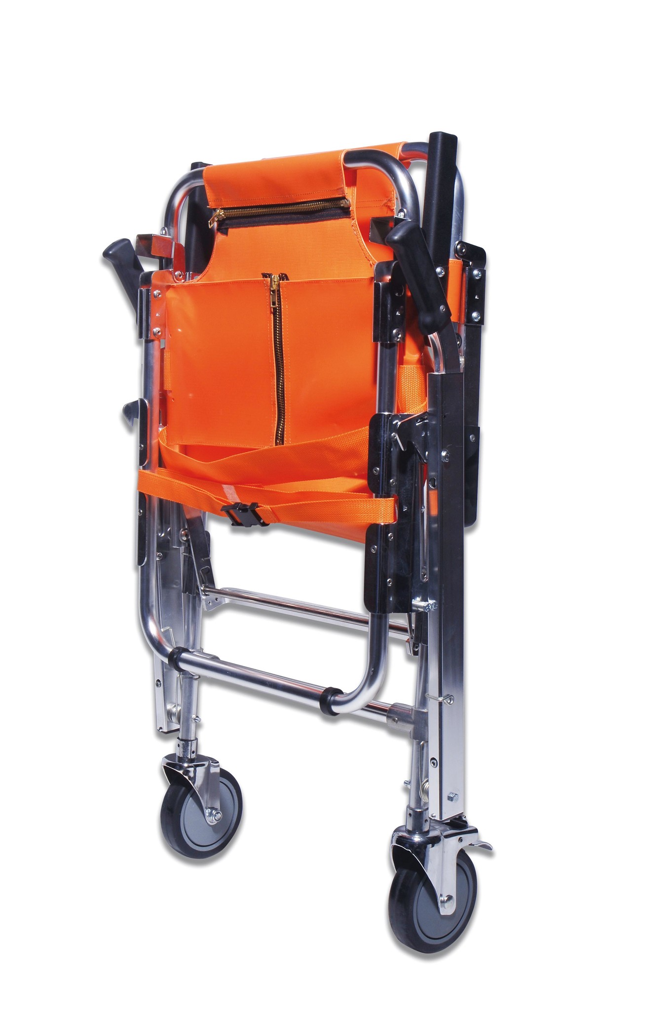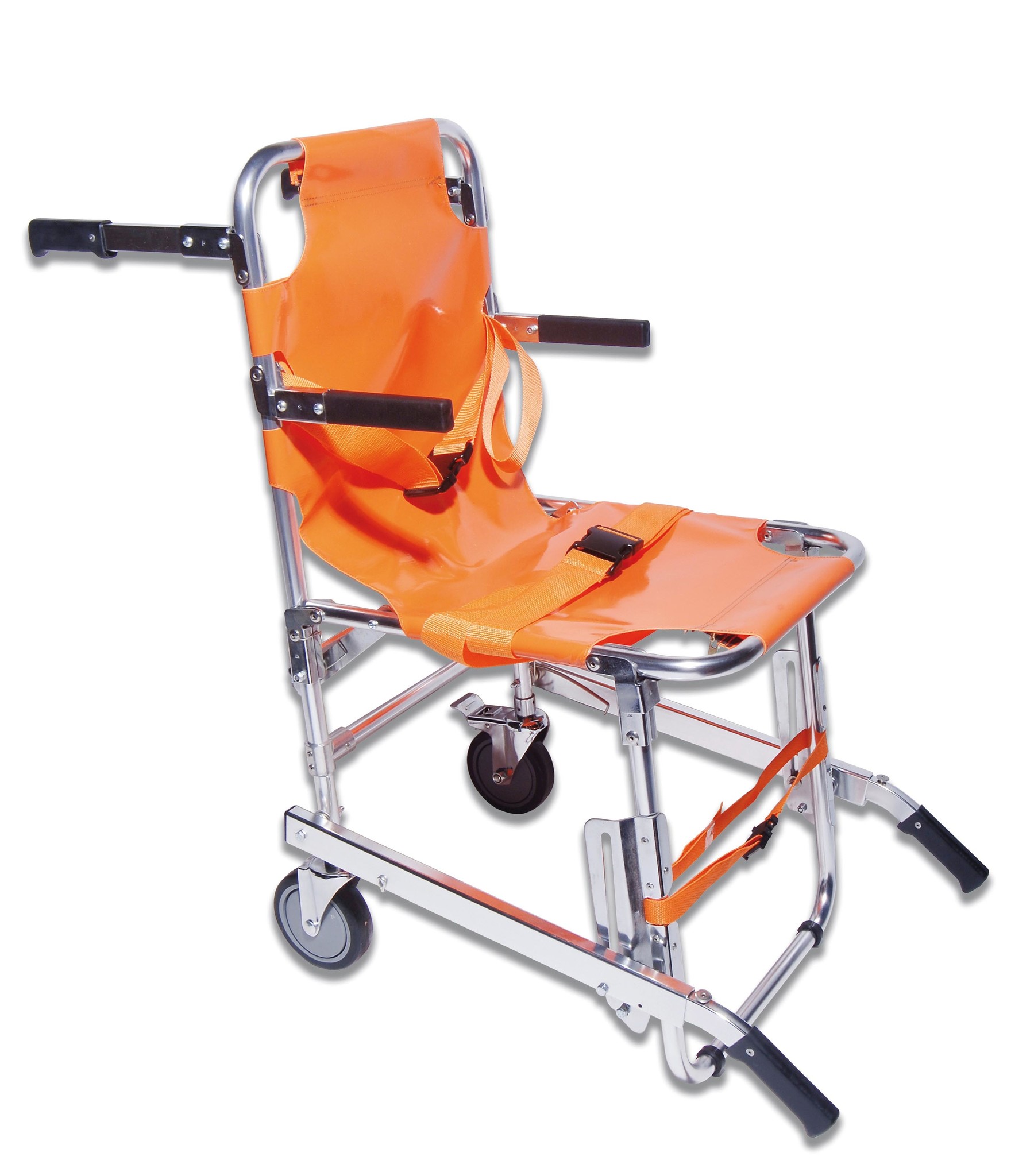 Cet article est indispensable pour transporter des patients vers les endroits les plus difficiles d'accès, tels que les escaliers, les couloirs, les ascenseurs et tous les endroits où le brancard ne peut pas passer. Le fauteuil est équipé de 4 poignées, dont 2 à l'avant. Très compact une fois plié, il est fabriqué en aluminium léger et recouvert d'une toile en nylon orange imperméable, avec un sac à objets placé derrière le dossier. Verrouillage de sécurité automatique, deux sangles pour immobiliser le patient, deux roues fixes dont une avec frein, pour faciliter le transport sur des surfaces glissantes.