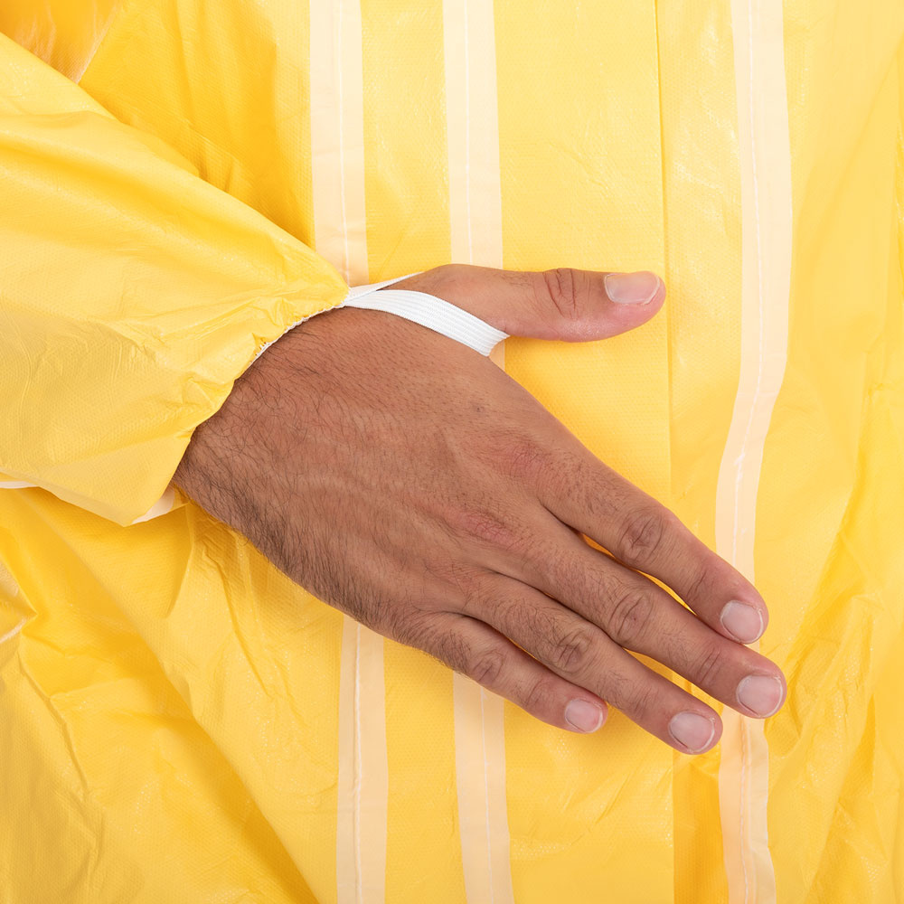 Les combinaisons ChemicalStar sont fabriquées à partir d'un matériau SMS de très haute qualité et protègent le porteur contre les risques biologiques et chimiques. Les combinaisons sont hydrofuges grâce à leur revêtement PE et sont conformes aux normes de type 3B, 4B, 5B et 6B. Cela signifie que les combinaisons ChemicalStar protègent contre les produits chimiques liquides (résistantes aux projections) et les particules solides. Les boucles pour les pouces et les bandes élastiques aux bras et aux jambes sont particulièrement pratiques pour le travail quotidien. La combinaison s'ajuste ainsi parfaitement, sans glisser, et couvre de manière fiable toutes les parties du corps. Les combinaisons constituent une protection corporelle idéale pour les secteurs de l'alimentation, du nettoyage, des laboratoires, de la médecine, de la pharmacie et de l'hygiène.
