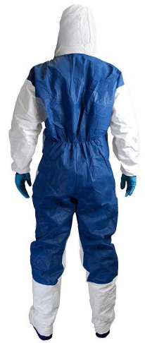 La combinaison jetable Chemsplash Cool est fabriquée à partir d'un tissu laminé microporeux blanc de 65 g/m² et d'un dos SMS respirant bleu de 55 g/m². Il en résulte une combinaison de catégorie III, type 5B/6B, qui offre la meilleure combinaison entre une protection élevée contre les projections chimiques et une barrière contre les particules dangereuses, avec en outre une respirabilité et un confort nettement améliorés.
