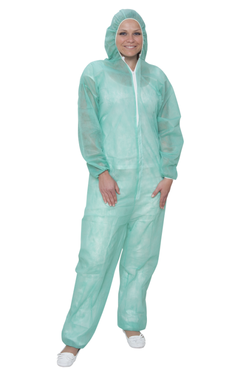 Combinaison non tissée PREMIUM avec capuche, verte, ≈ 32 g/m²