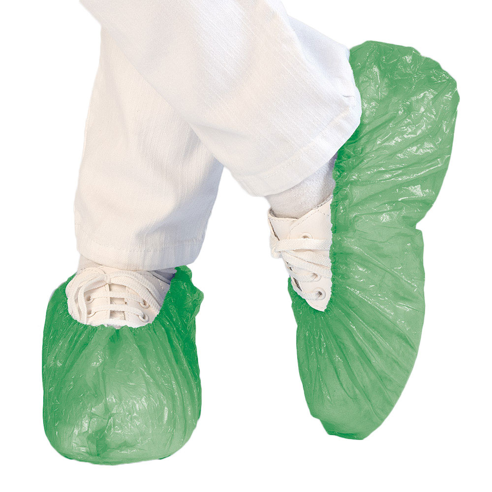 Les surchaussures sont fabriquées en CPE. Elles sont idéales pour les visiteurs et les employés dans l'industrie, la production alimentaire et d'autres espaces hygiéniques. Les surchaussures en CPE s'utilisent de préférence avec la machine à surchaussures Hygomat. Le Hygomat rend l'enfilage des surchaussures plus rapide, plus confortable et plus hygiénique, car il n'est pas nécessaire de manipuler les surchaussures avec les mains. Les surchaussures jetables sont hydrofuges et protègent donc contre le contact prolongé avec l'eau.