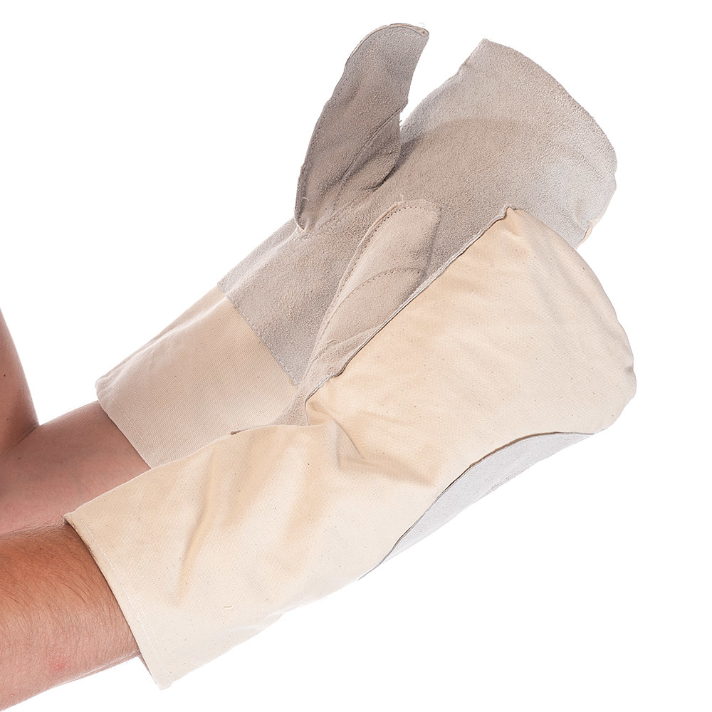 Gants de cuisine résistants à la chaleur avec manchette / cuir, toile