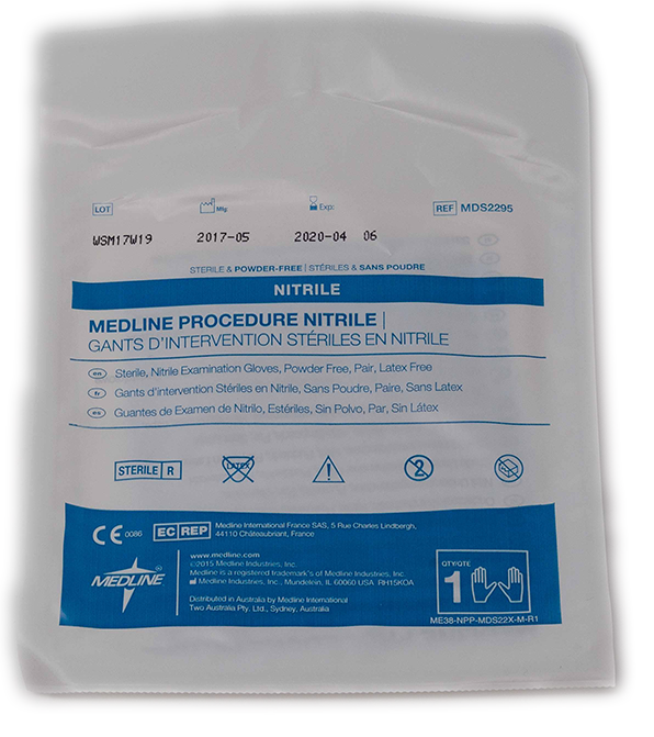 Gants d'examen stériles en nitrile, non poudrés, de Medline
