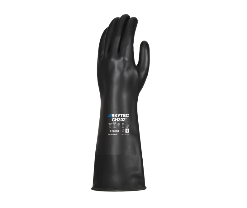 SKYTEC CH302 est un gant en caoutchouc naturel résistant aux produits chimiques, doté d'une longue manchette (45 cm).