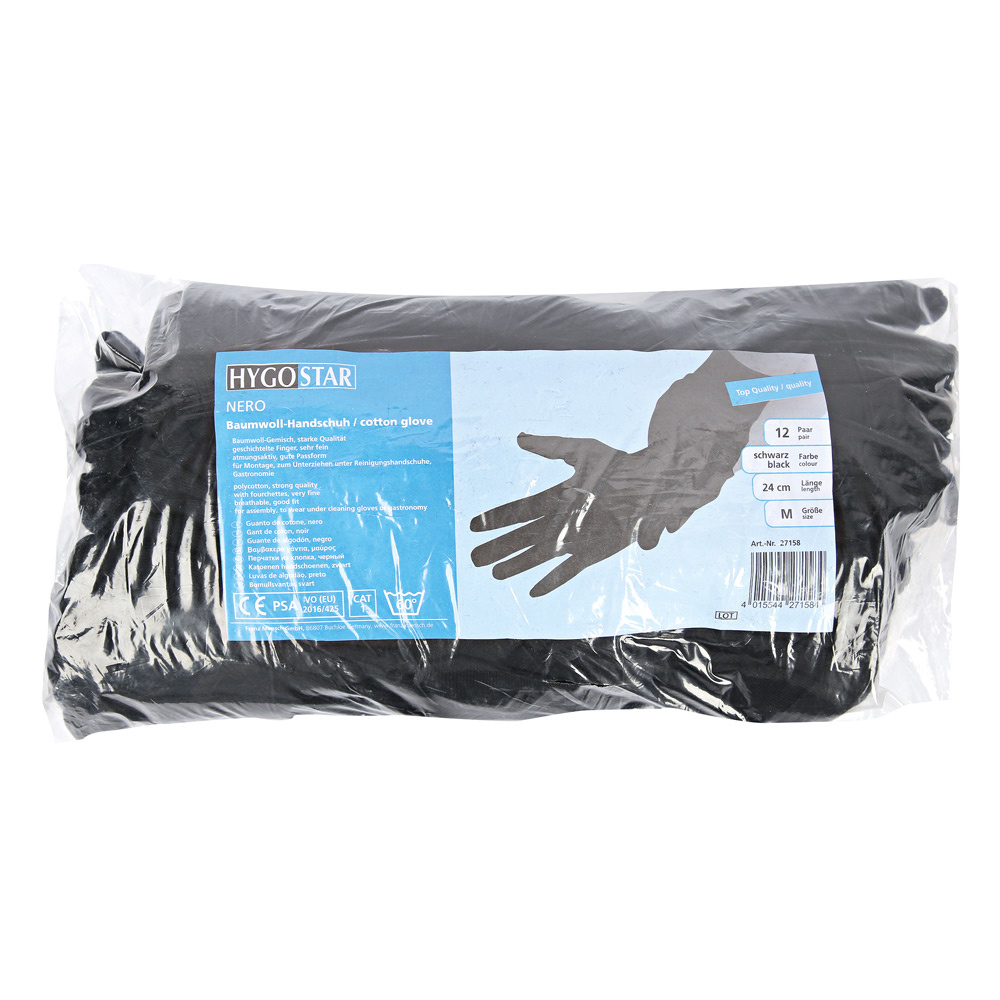 Les gants en coton Nero sont d'un noir intense et se distinguent immédiatement par leur esthétique. Ils sont plus noirs et de meilleure qualité que les gants en coton noir comparables. Les gants Nero sont donc souvent utilisés comme gants de travail foncés dans l'industrie, les ateliers et la logistique. Cependant, ces gants en tissu de poids moyen conviennent également parfaitement pour le travail dans le secteur de la restauration ou pour être portés sous des gants de nettoyage.