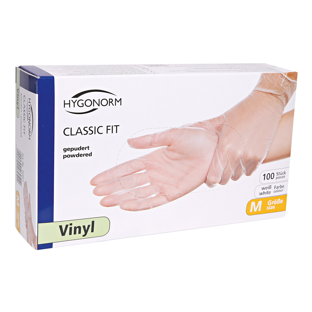 Gants en vinyle CLASSIC FIT poudrés transparents de Hygonorm