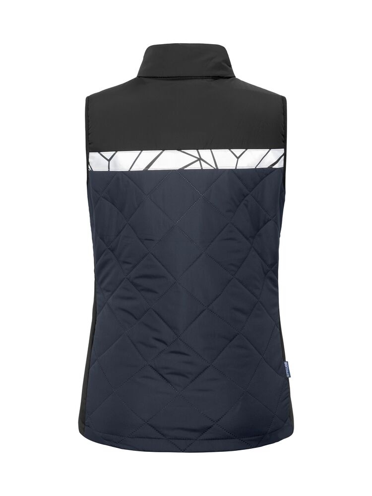 Gilet sans manches en tissu léger sans coutures, avec coutures en losange - Poche poitrine à fermeture éclair sur le côté droit, avec support interne pour fixer la carte d'identité - Poches latérales à fermeture éclair des deux côtés - Pochette pour étiquette d'entretien dans la couture intérieure gauche - Livré dans un sac en polyéthylène biodégradable et compostable.
