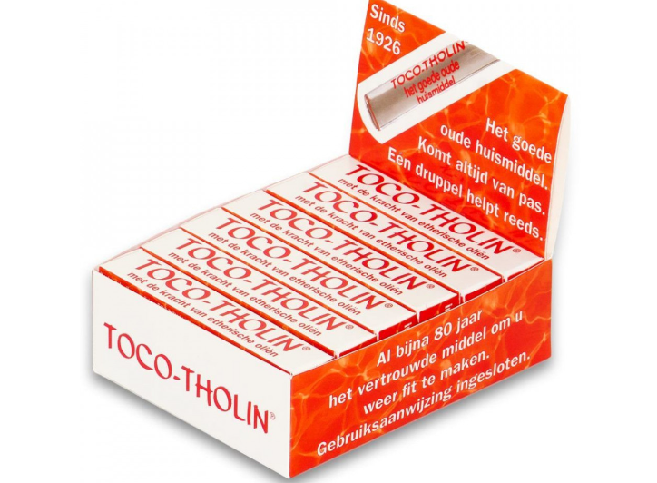Les ingrédients du « bon vieux remède maison » TOCO-THOLIN sont : huile de menthe poivrée, eucalyptus, anis étoilé, petit grain, lavande, romarin, huile de clou de girofle et menthol.