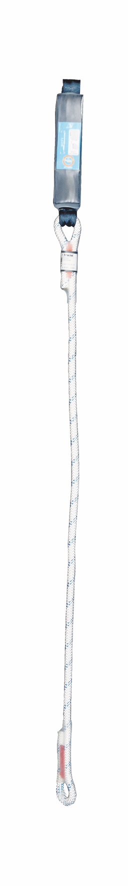 Ligne de sécurité simple en corde à âme Ø 12,5 mm, fabriquée en fibres de polyamide, avec amortisseur de chute. Longueur 1,5 mètre.