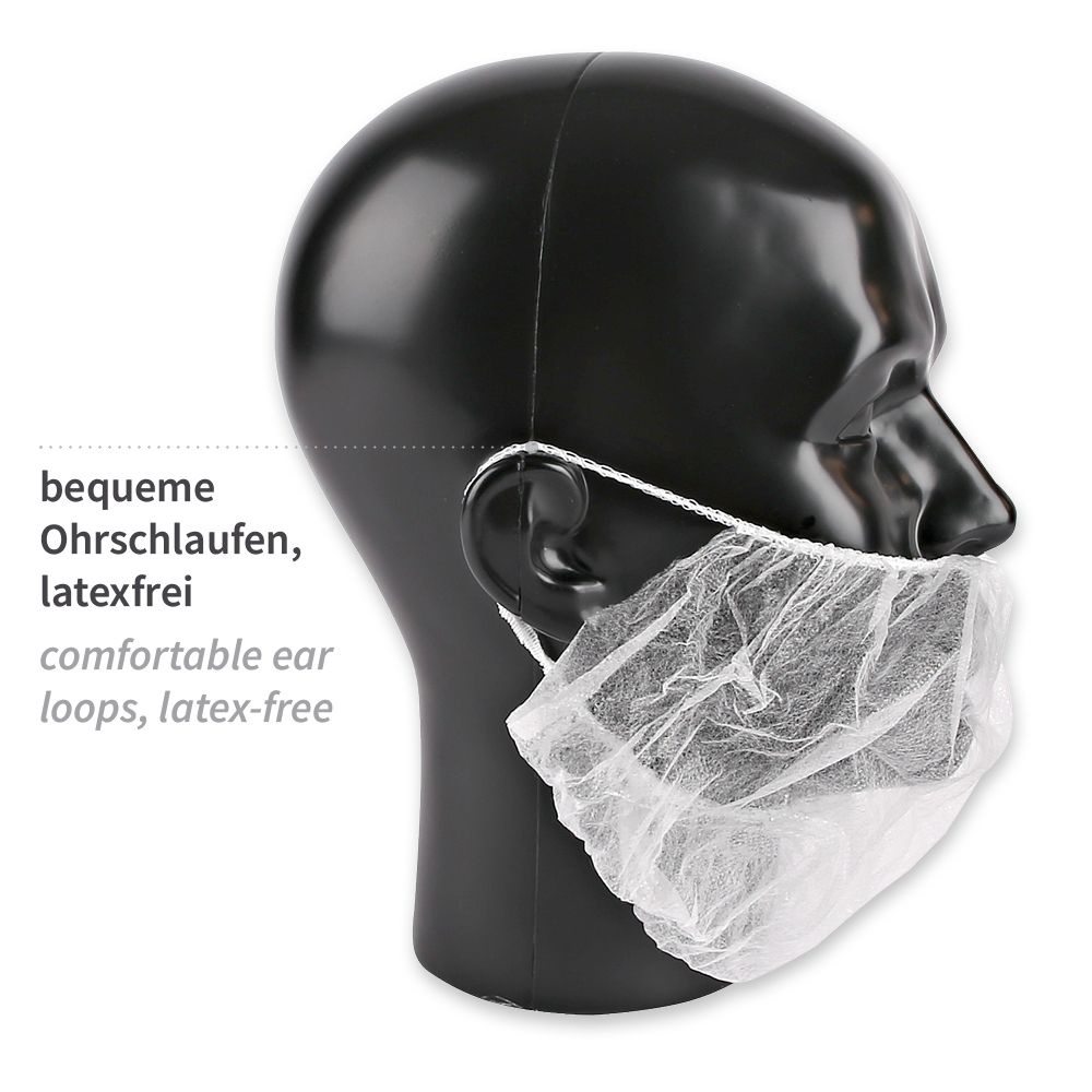 Masque à barbe PP non tissé avec 2 élastiques pour les oreilles - blanc