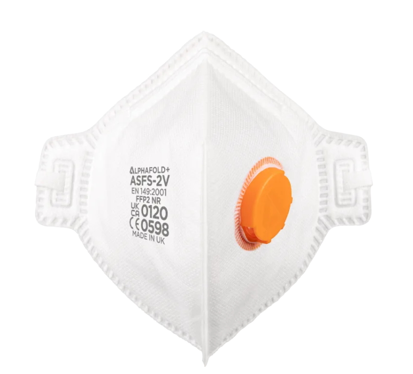 L'AlphaFold+ est un masque jetable pliable verticalement, conçu avec un joint facial interne et des sangles réglables pour offrir un ajustement optimal à toutes les formes de visage.