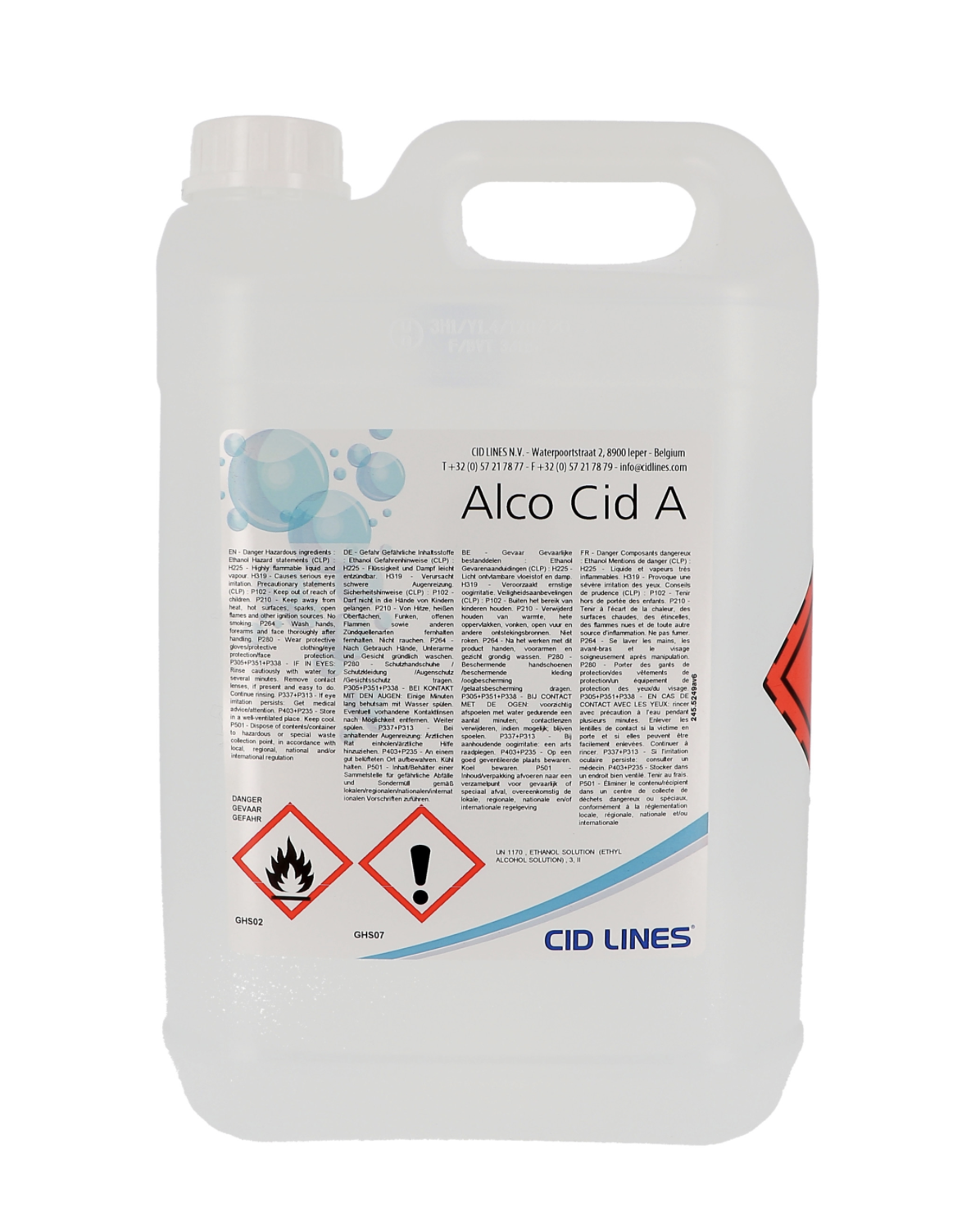 Alco Cid A est un liquide à base d'alcool destiné à la désinfection des petites surfaces. Il s'applique par pulvérisation sur les petites surfaces sans laisser de résidus.