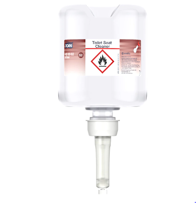 Le nettoyant pour siège de toilettes Tork offre une sécurité et un confort supplémentaires aux visiteurs. Une dose de nettoyant pour siège de toilettes sur un morceau de papier toilette garantit un siège plus propre. Compatible avec le distributeur de savon liquide Tork Mini, très facile à utiliser.