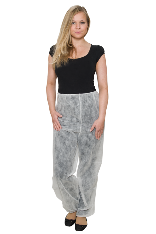 - Pantalon jetable avec élastique sans latex à la taille et aux chevilles