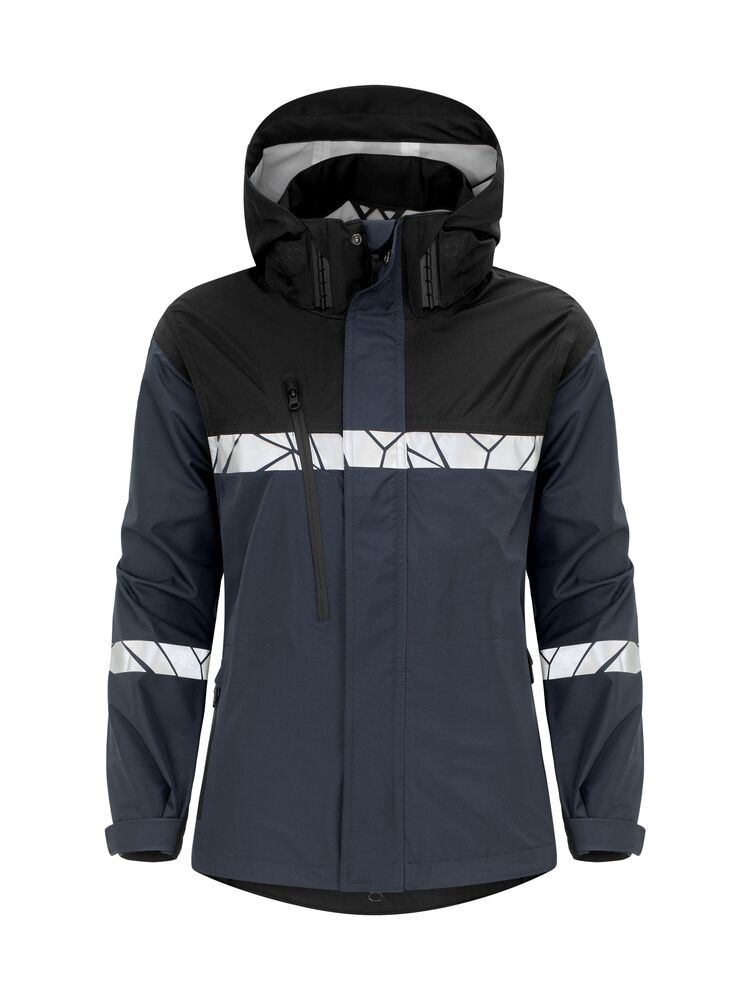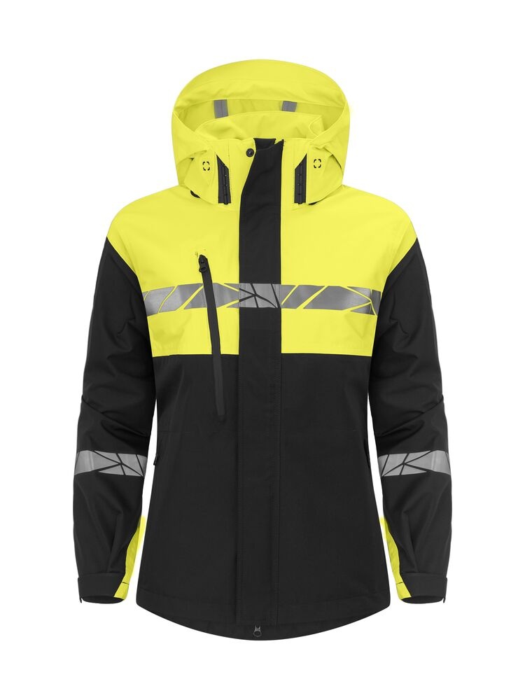 Veste shell en matière imperméable et coupe-vent, coutures étanches - Fermeture éclair à l'avant recouverte d'un rabat pour empêcher les courants d'air et les infiltrations d'eau, fermeture à boutons-pression - Capuche amovible, réglable de deux façons avec cordon de serrage à l'avant et système de serrage FitGo à l'arrière - Poches latérales des deux côtés, grande poche poitrine à droite et une poche intérieure à gauche, toutes les poches sont zippées - Extrémités des manches réglables par velcro, ourlet réglable par cordon de serrage - Pochette pour étiquette d'entretien dans la couture intérieure gauche - Visibilité accrue selon la norme EN 17353.