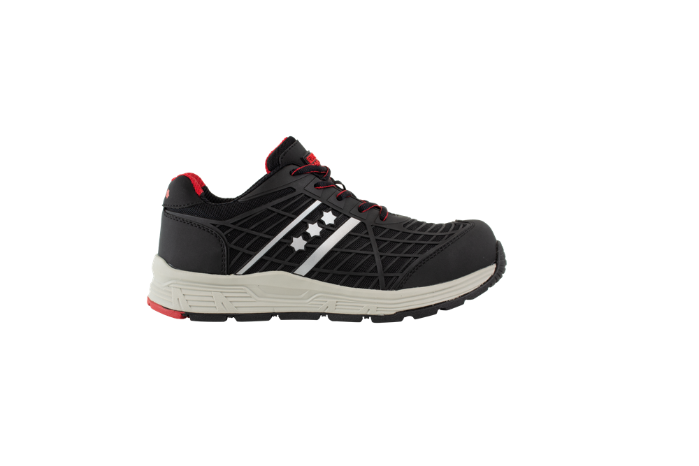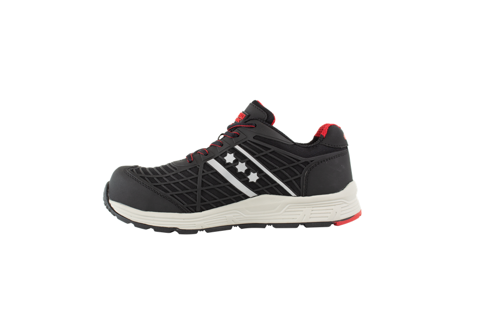 Cette chaussure est une chaussure de sécurité S3 légère, au look sportif et tendance, 100 % sans métal. Elle est dotée d'une tige imperméable, robuste et résistante à l'usure, ainsi que d'un bout protecteur. Elle est équipée d'une doublure en mesh respirante et évacuant l'humidité, ainsi que d'une semelle intérieure en mousse PU pour un confort accru. La semelle intérieure est composée à 50 % de matériaux recyclés. De plus, la chaussure est dotée d'une semelle intermédiaire en EVA absorbant les chocs et économisant l'énergie, ainsi que d'une semelle extérieure en caoutchouc sportive, résistante à l'usure et antidérapante.