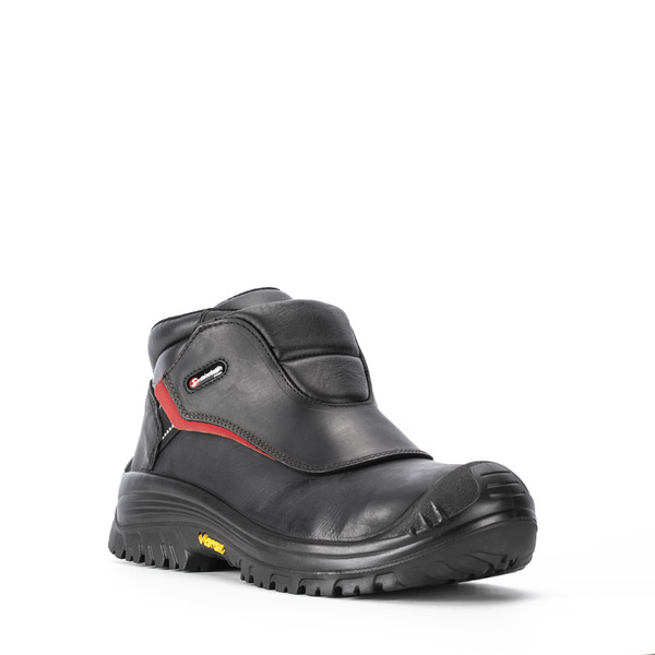 Cette chaussure de soudage est dotée d'un embout de sécurité composite ultraléger, thermo-isolant et non conducteur d'électricité. Elle offre néanmoins une protection contre les chocs jusqu'à 200 joules. Une semelle extérieure en PU/caoutchouc nitrile de haute qualité de Vibram assure adhérence, stabilité et confort de marche. Cette semelle résiste à des températures allant jusqu'à 300 °C.