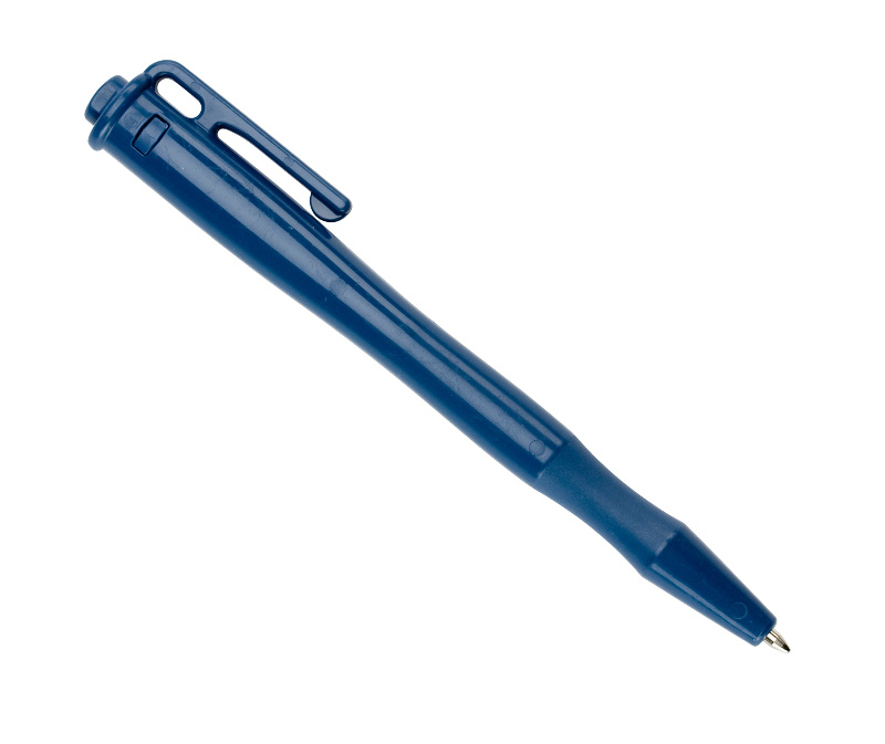 Stylo détectable non rétractable pour les applications où des stylos « monoblocs » sont spécifiés. Disponible avec ou sans clip de poche, avec un choix de couleurs d'encre bleue et noire.