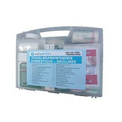 La trousse de premiers secours à domicile / pour les brûlures est compacte et devrait être présente dans chaque foyer, car la plupart des accidents surviennent à la maison ou à proximité. Cette trousse contient notamment : des pansements, des bandages, du désinfectant, du gel pour brûlures, etc.
