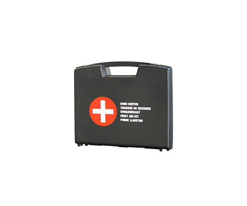 Trousse de premiers secours en polypropylène pour toutes les industries, de 1 à 10 personnes : contient notamment des pansements, des bandages, des compresses, du désinfectant, un masque, etc.