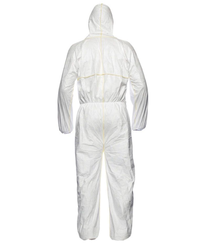 La combinaison DuPont™ Tyvek® Easysafe offre une excellente protection grâce à sa capuche et à ses coutures extérieures jaunes bien visibles. Les poignets, les bas de jambes et la capuche élastiques assurent un ajustement sûr. Un élastique cousu dans le dos offre un confort supplémentaire et une grande liberté de mouvement. La fermeture à glissière avec rabat assure une fermeture fiable et une protection optimale.