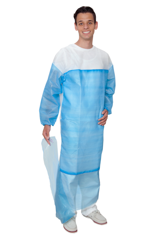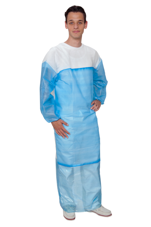 • Blouse pour visiteurs avec revêtement PE bleu sur les manches et le devant