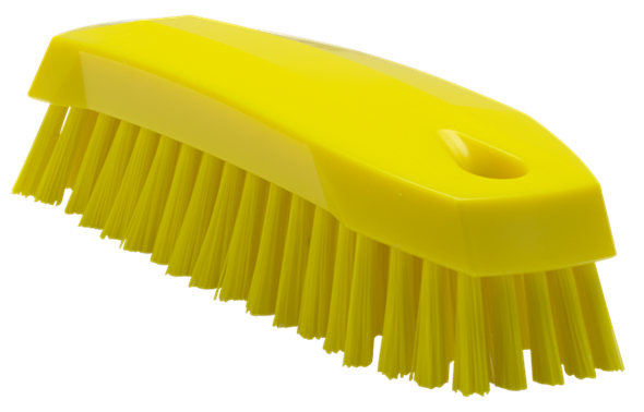 Nettoyez facilement les surfaces destinées à la préparation des aliments, les planches à découper et les récipients alimentaires à l'aide de cette petite brosse à main à usage général.